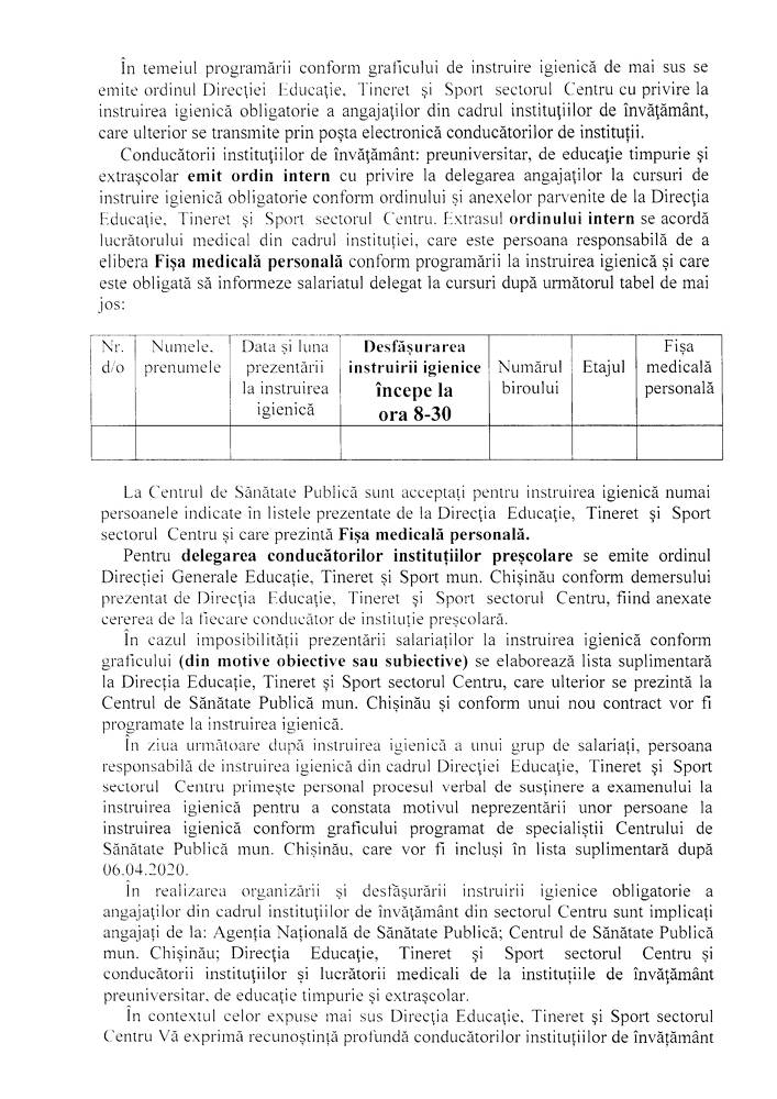 Nota informativa Instruirea igienică obligatorie а angajaților