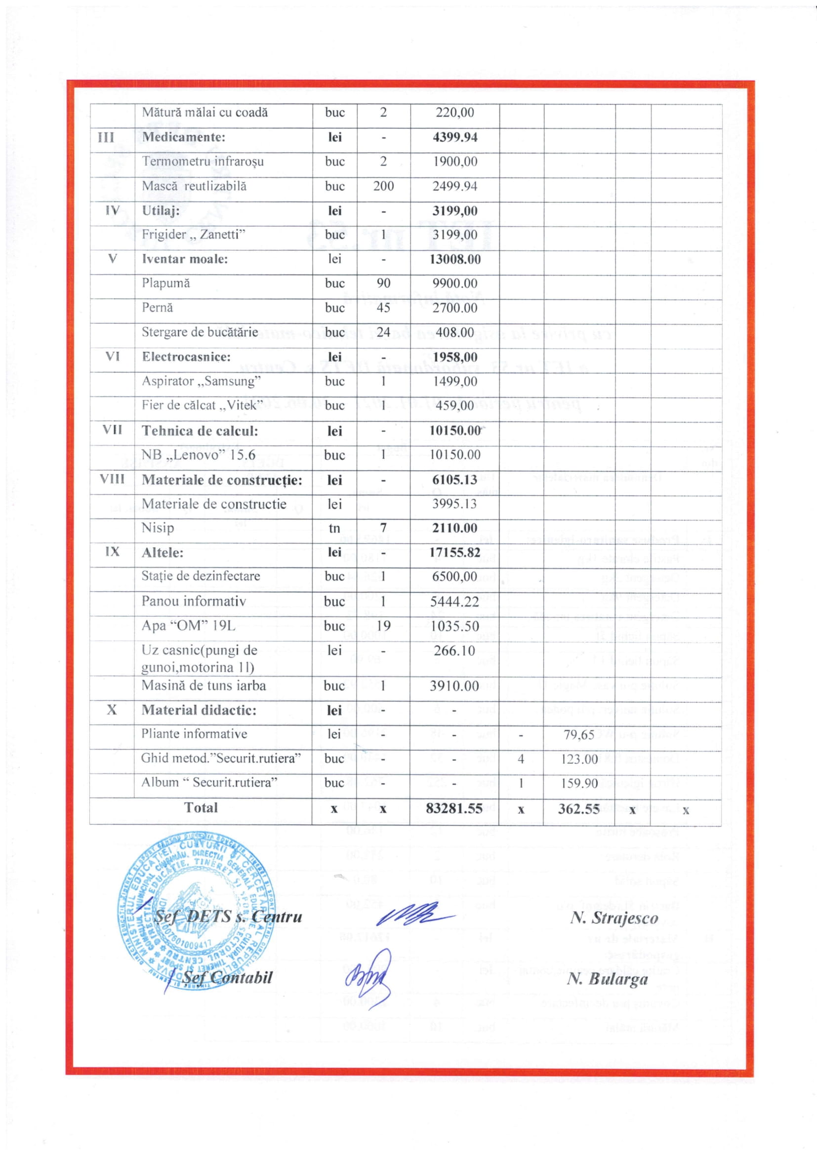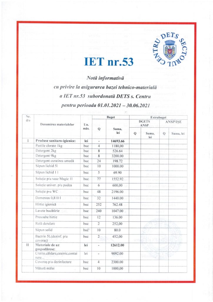 Asigurarea bazei tehnico-materiala a instituțiilor pentru perioada 01.01.2021-30.06.2021
