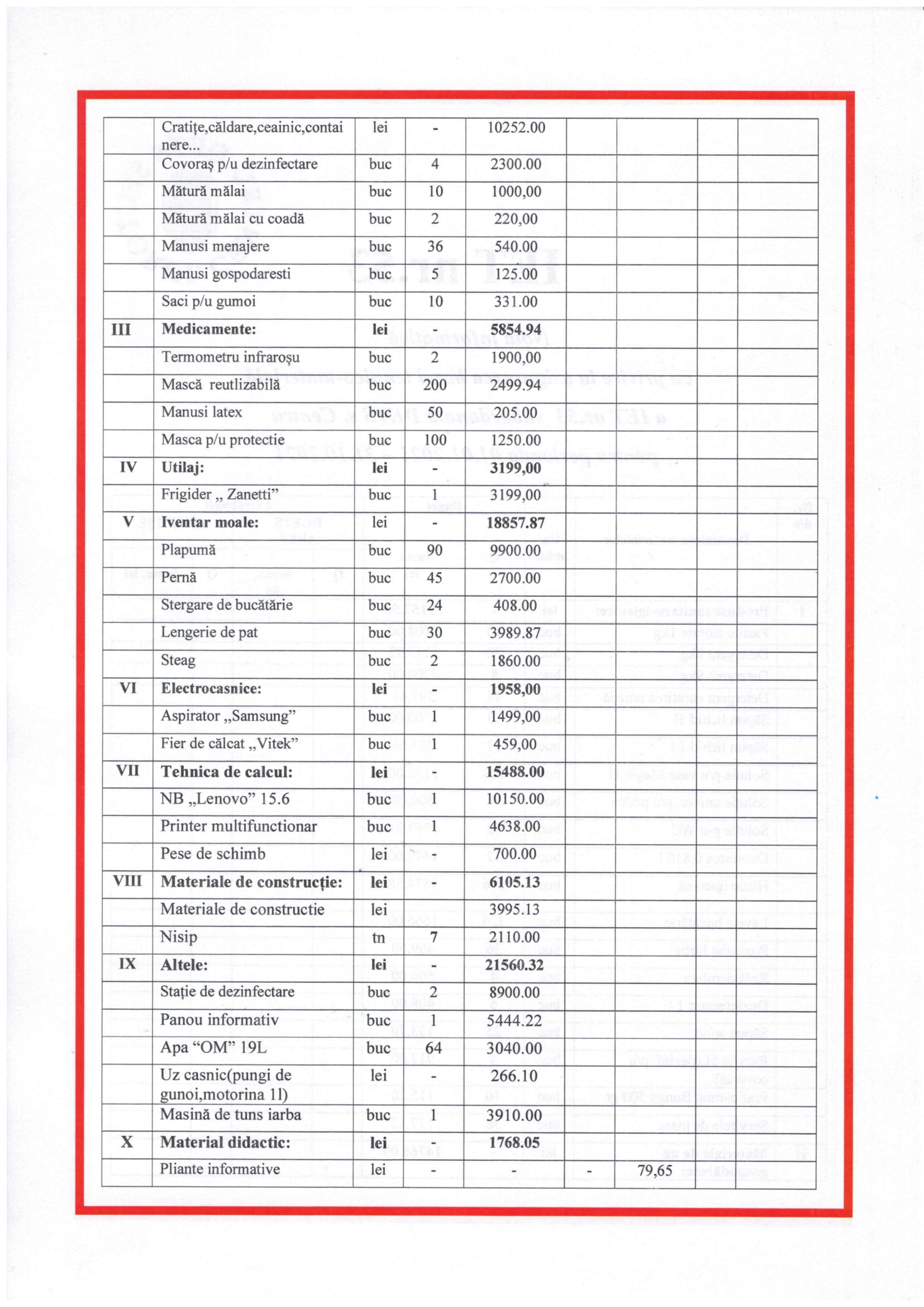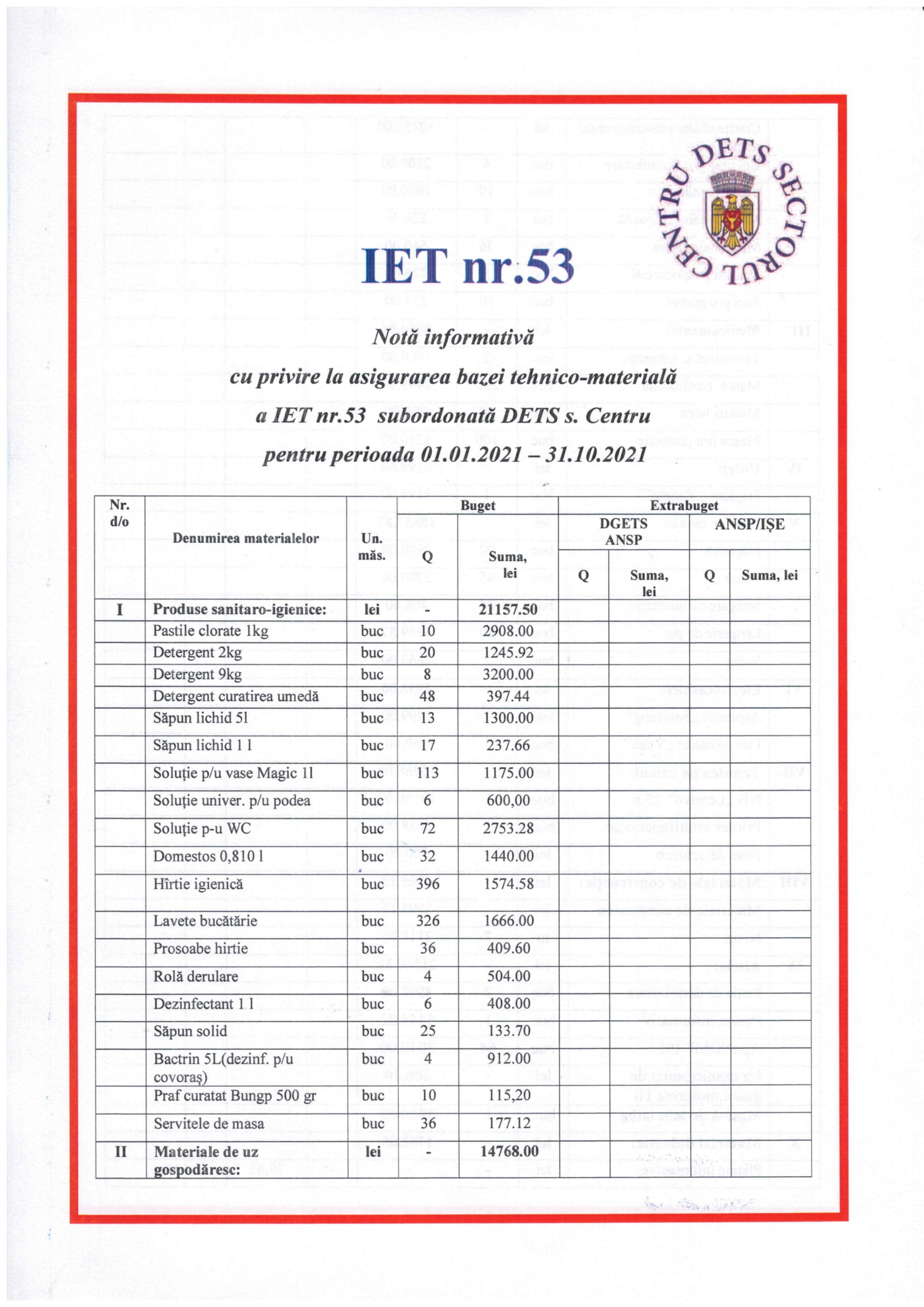 Asigurarea bazei tеhniсo – mаtеriаlе pentru perioada 01.01.2021-31.10.2021