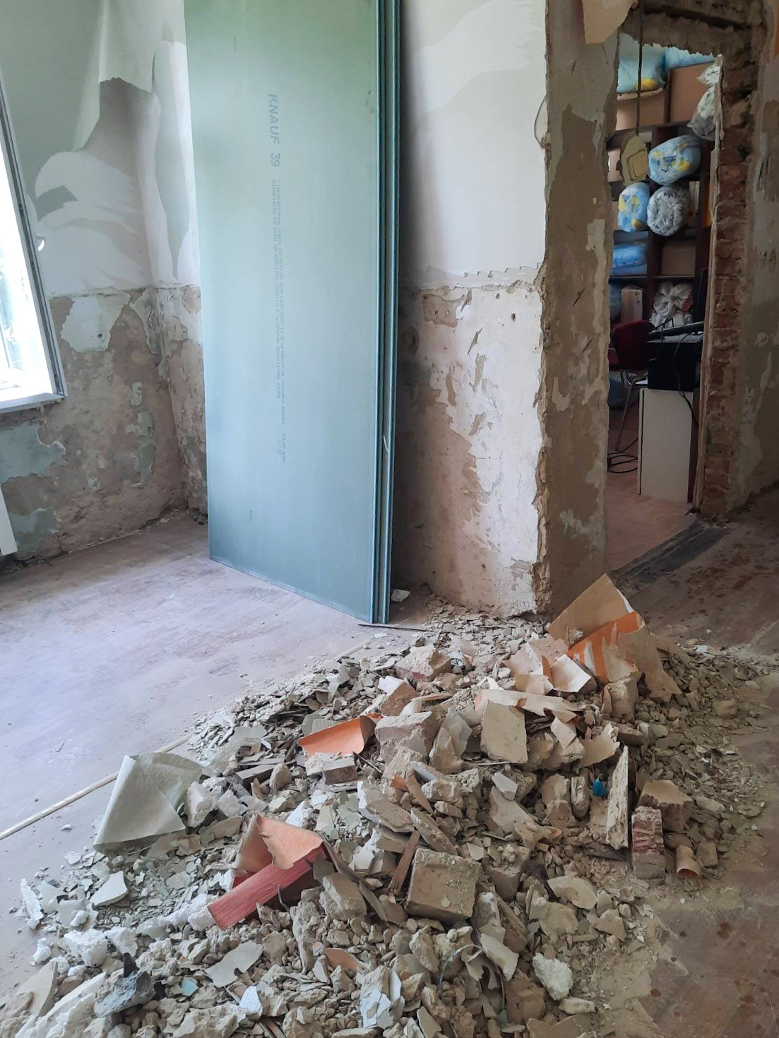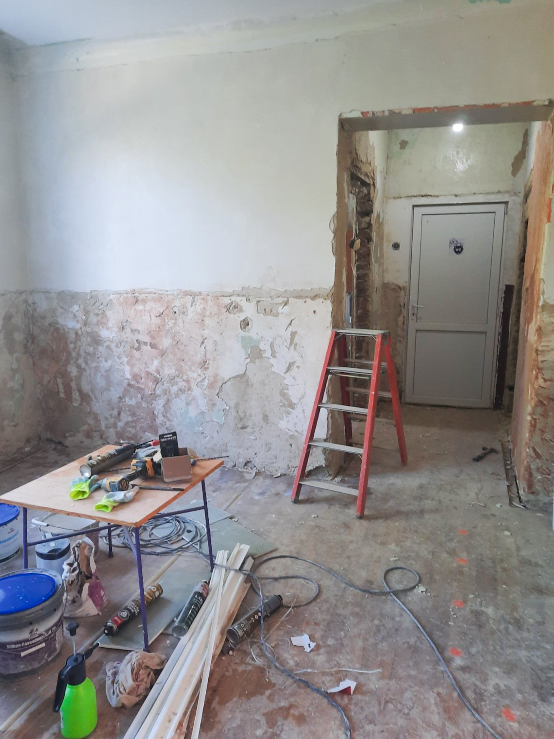 În prima fază a lucrărilor s-a îndepărtat tencuială de pe pereți și s-a înlăturat pardoseala veche, între timp se consolidează zidăria, se fac glafurile ușilor și ferestrelor. Lucrărilor continuă în ritm susținut conform agendei și proiectului tehnic.