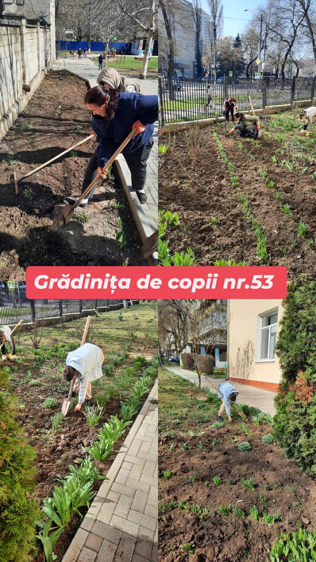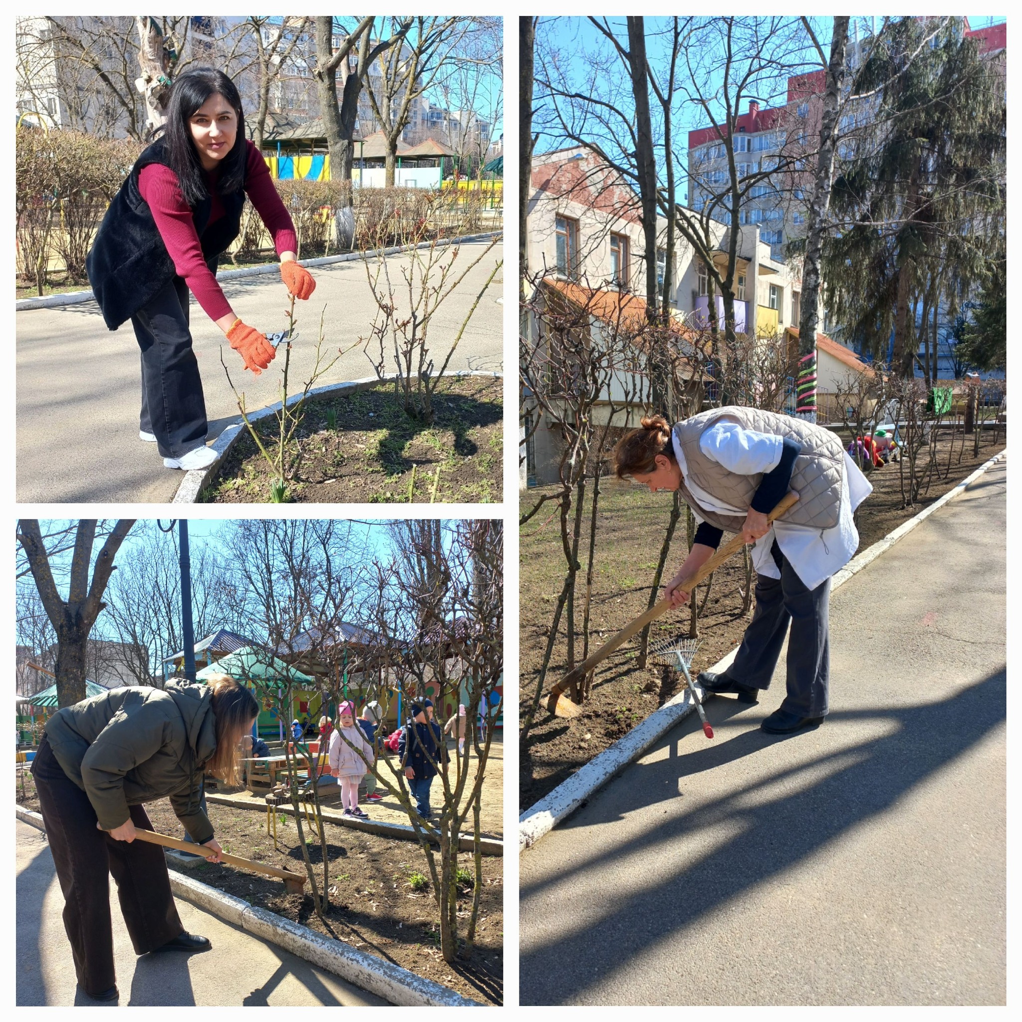 – amenajarea spațiului verde prin afânarea solului și plantarea florilor, toaletarea ramurilor, etc.