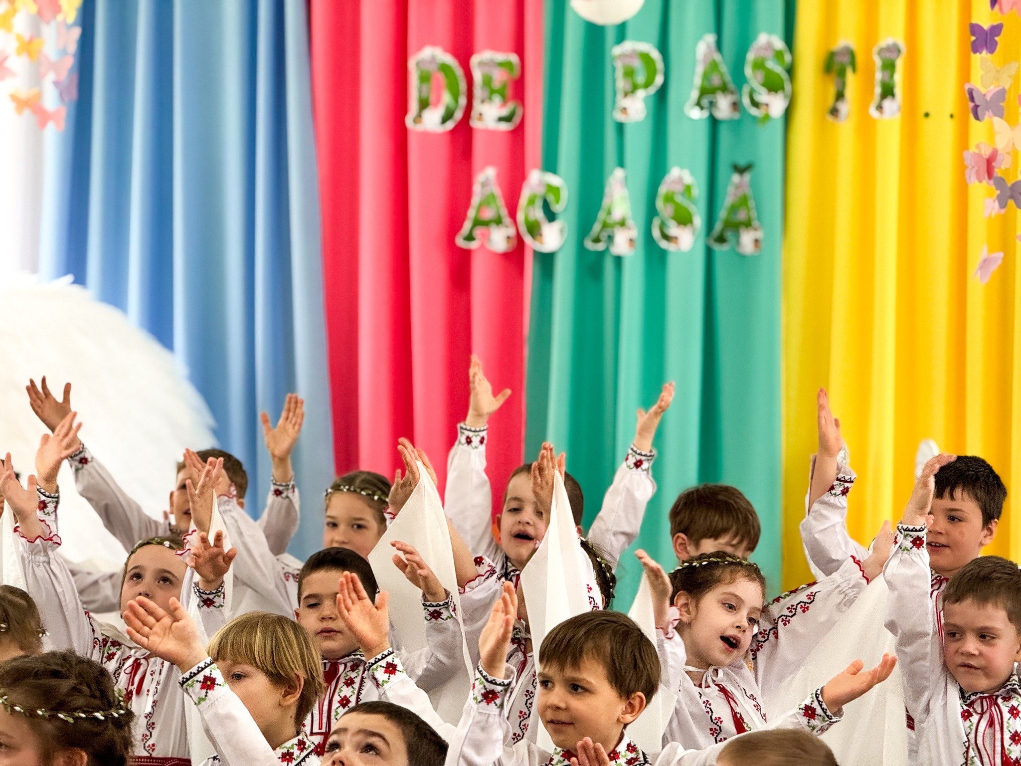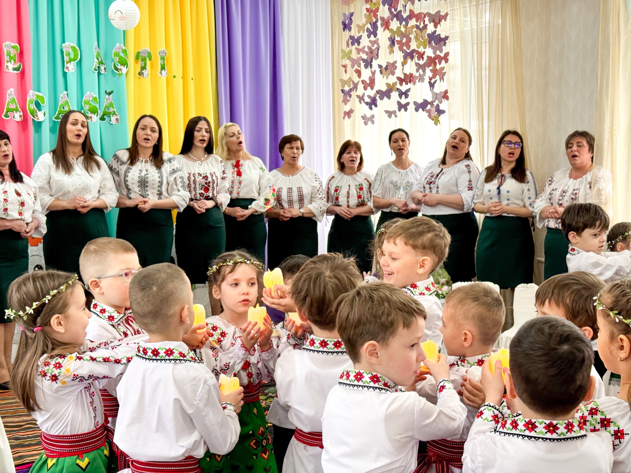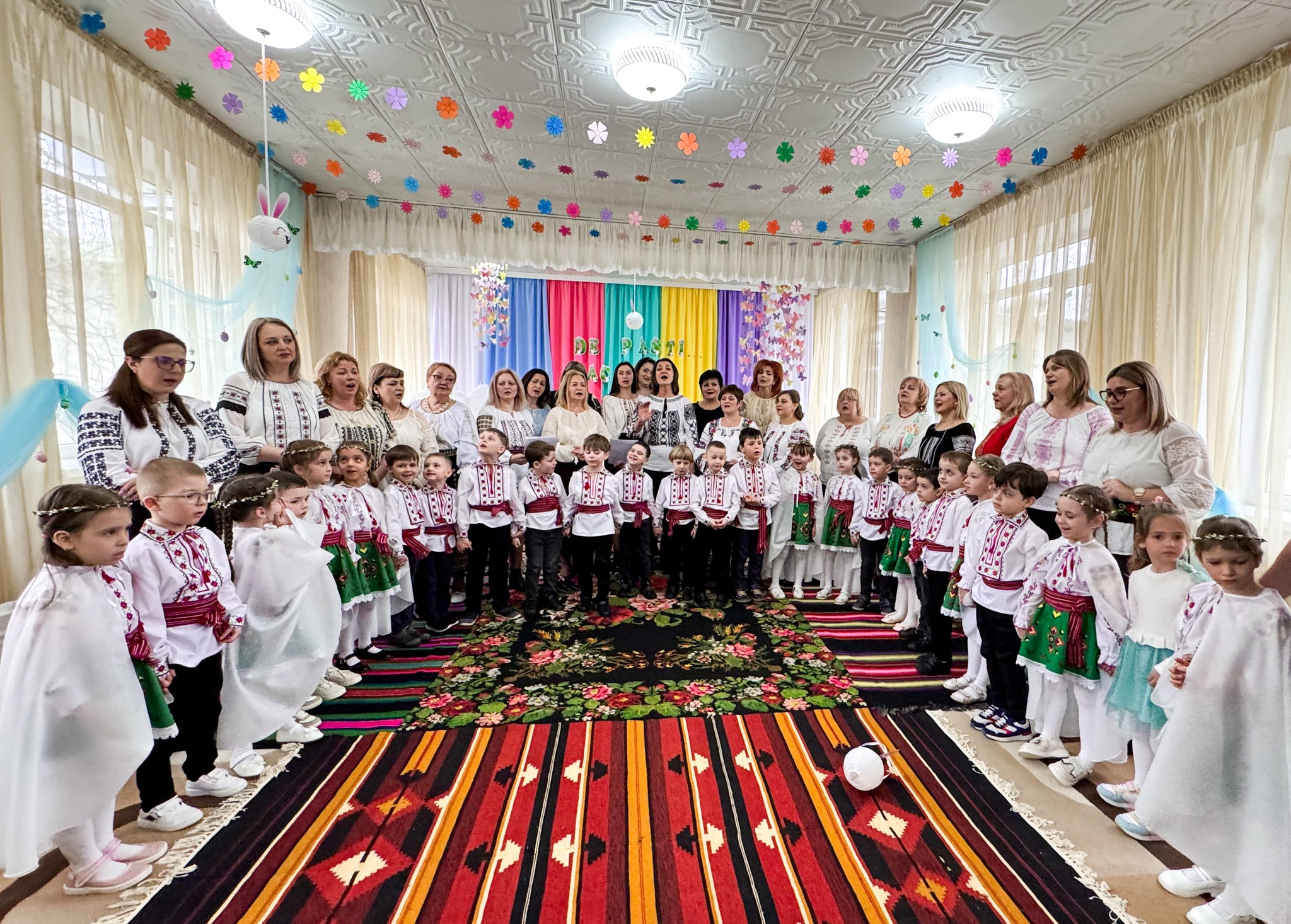 A fost un adevărat festin artistic datorită spectacolului muzical la care au luat parte cu toții, de la mic la mare. Preșcolarii au captivat cu momente artistice pline de emoție, cadrele didactice cu prestații talentate, directorii alături de Șefa DETS Centru cu frumoase colinzi pascale, iepurașul de Paști cu cadouri și surprize.