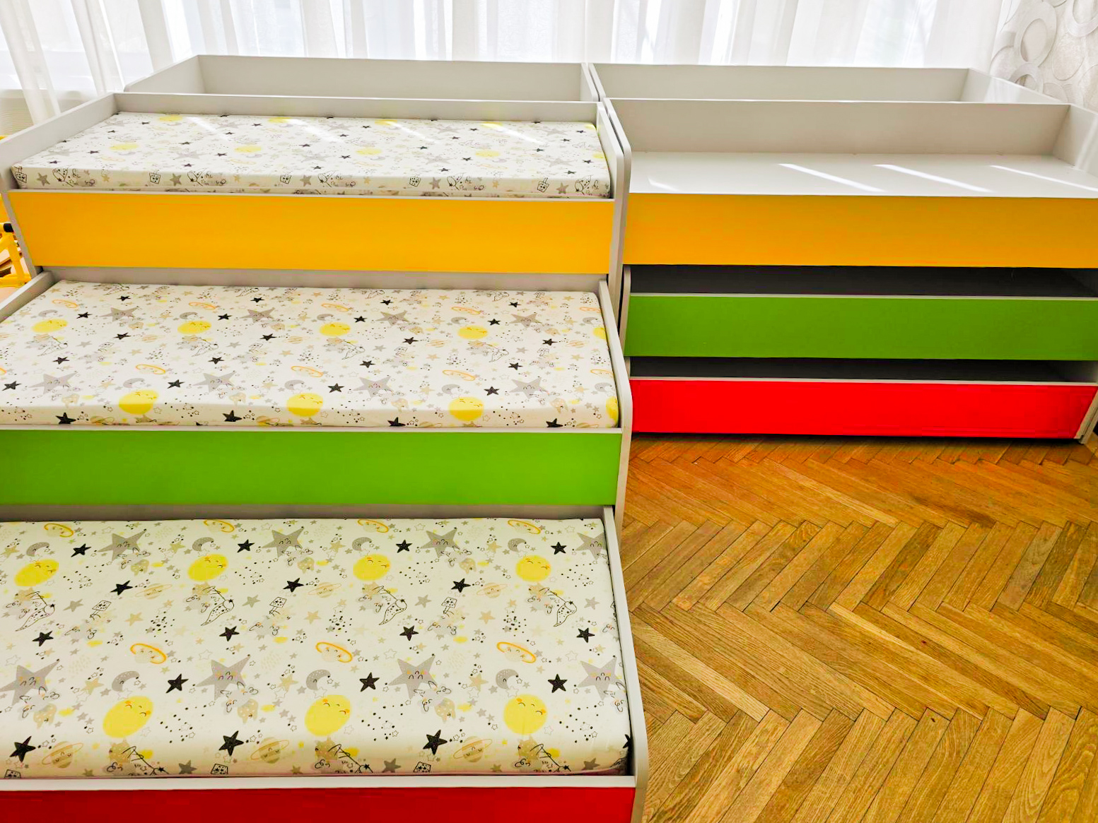 🔻Paturi pentru copii în 3 nivele, care permit o utilizare eficientă a spațiului;