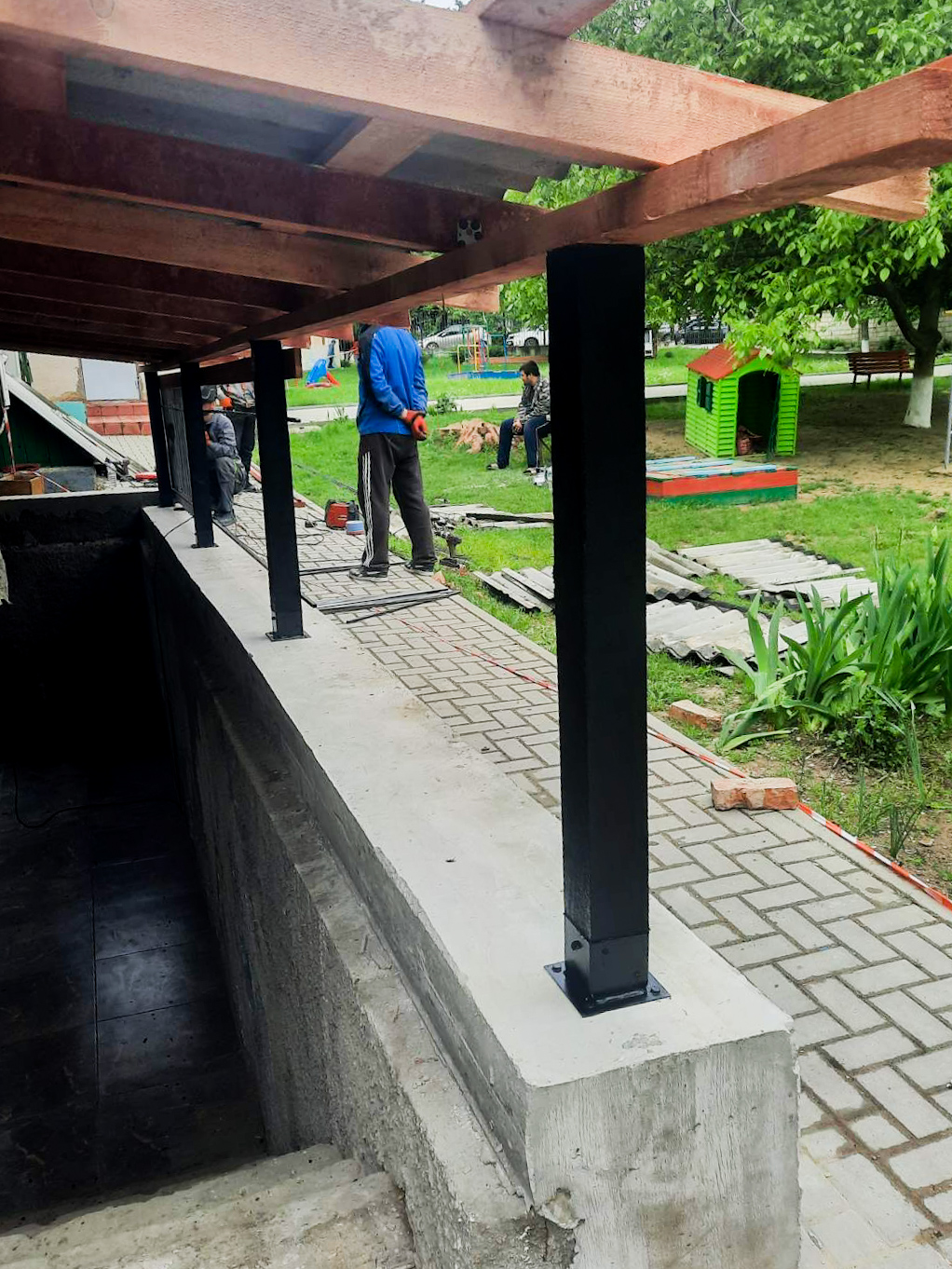 – instalarea copertinei, montarea barelor de sprijin și reparația temeliei la intrarea în spălătorie.